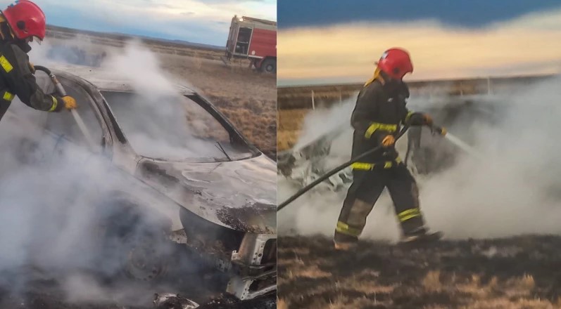 Se incendio un auto a las afueras de Puerto Santa Cruz, intervino una dotación de bomberos sobre la Ruta Nacional 288, a unos 14 kilómetros del casco urbano. Al arribar, los efectivos constataron que un Volkswagen Gol Trend se encontraba completamente envuelto en llamas.
