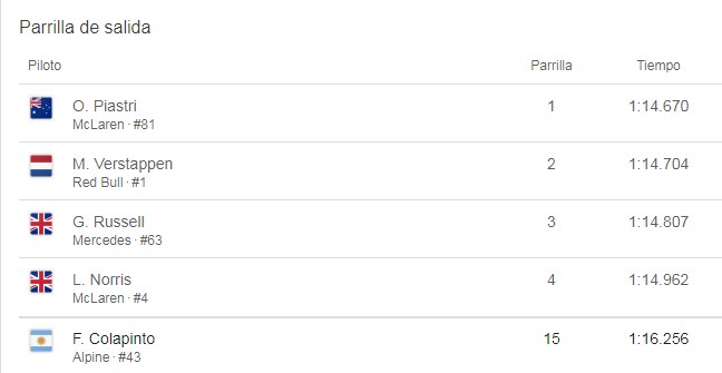 En la Qualy 1 del Gran Premio de Imola fueron eliminados Yuki Tsunoda, que también sufrió un fuerte choque, Oliver Bearman, Esteban Ocon, Nico Hülkenberg y Liam Lawson. Franco Colapinto había logrado meterse en la Q2, pero su fuerte accidente le impedirá salir, por lo que largará en el puesto 15° el domingo.