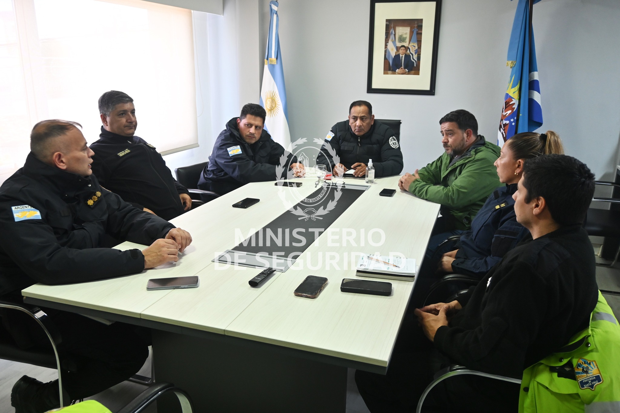 Para ello, se llevó adelante una reunión encabezada por el ministro de Seguridad, Pedro Prodromos, junto al jefe de la Policía de la Provincia de Santa Cruz, Crio. Gral. Diego Agüero; el Subjefe de Policía, Crio. Gral. Luis Bordón; la Directora General de Policía Caminera, Crio. My. Patricia Carrillo, y el Subsecretario de Transporte, Rubén Segura.