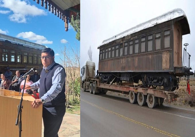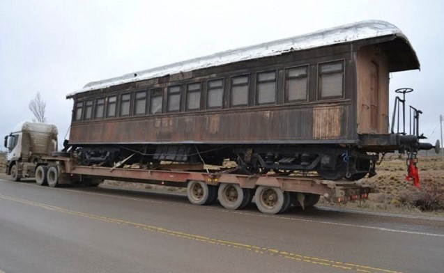 El coche comedor vagón P.111 en Jaramillo, es una reliquia histórica del primer ferrocarril estatal argentino de hace más de 100 años. Actualmente, el gobierno provincial y la comuna están restaurando este vagón para ponerlo en valor turístico y patrimonial en el museo local.-