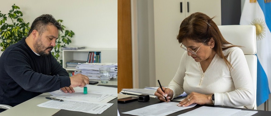 La presidenta del Consejo Provincial de Educación, Iris Rasgido, se reunió con el intendente de Caleta Olivia Pablo Carrizo, para firmar un convenio con el objetivo de continuar garantizando el servicio integral de limpieza diaria y permanente en las instituciones educativas de la localidad.