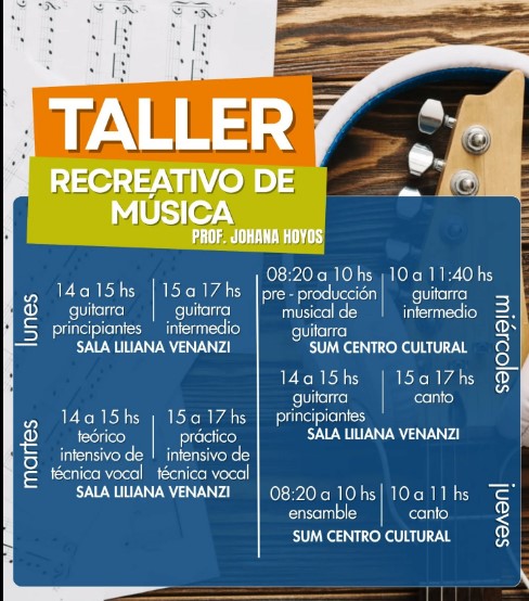 “Tenemos muchas áreas, guitarra para principiantes, intermedios, un intensivo de técnica vocal que va a ser teórico y práctico y a la vez canto también”, detalló sobre los espacios disponibles.