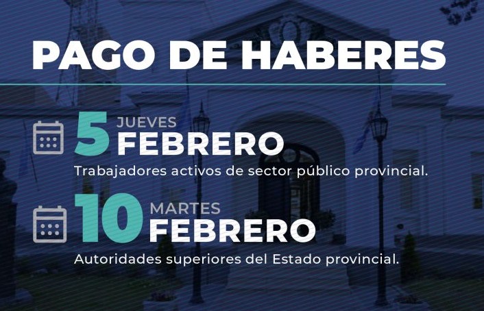 CRONOGRAMA OFICIAL: este jueves 5 de febrero estarán depositados los haberes de la totalidad de los agentes de la Administración Pública y el 10 para funcionarios.