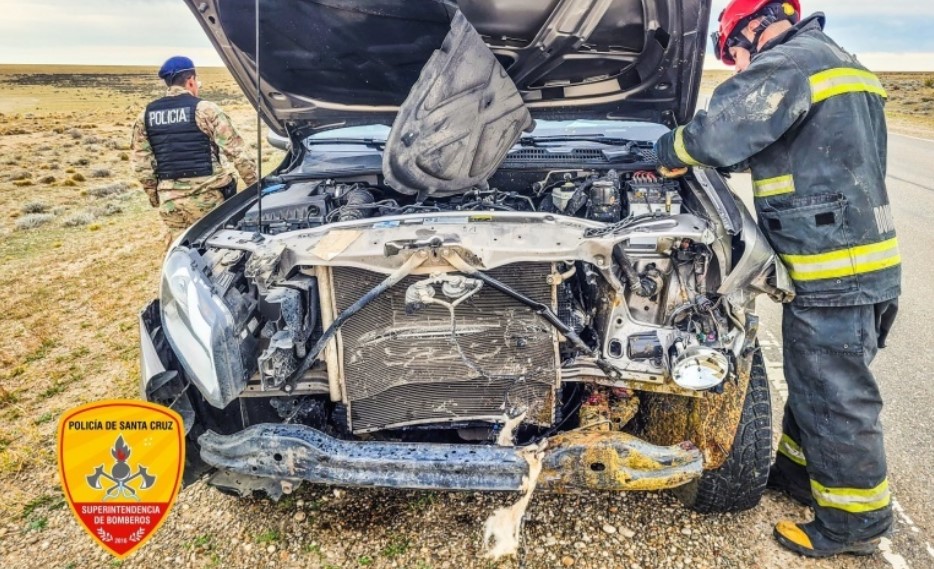 El siniestro se produjo cuando una camioneta Volkswagen Amarok colisionó frontalmente contra un guanaco que se cruzó de manera imprevista sobre la calzada. Como consecuencia del fuerte impacto, el vehículo terminó sobre la banquina derecha con importantes daños en su estructura delantera.