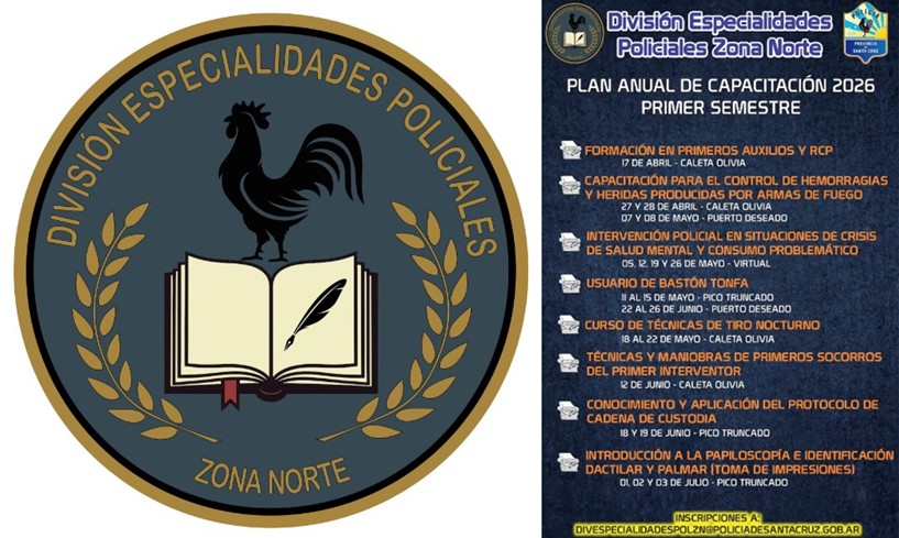 Los interesados deberán inscribirse a través del email de la División Especialidades Policiales Zona Norte divespecialidadespolzn@policiadesantacruz.gob.ar debiendo adjuntar nota de autorización del Jefe de la dependencia en caso de afectar el servicio.-