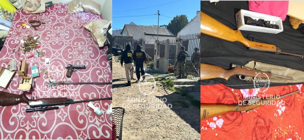 Sin embargo, en un segundo inmueble, los efectivos hallaron una pistola de aire comprimido, que habría sido utilizada para amedrentar a la víctima. Además, se secuestraron dos armas de fuego largas aptas para disparo y una importante cantidad de municiones de distintos calibres, entre ellas cartuchos calibre 12, .22 y .45, así como vainas servidas.