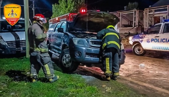 Bomberos de 28 de Noviembre intervinieron cerca de la medianoche ante un principio de incendio vehicular en el barrio Convivir. Personal de la División Cuartel 14° acudió a la intersección del pasaje Nicolich y 9 de Julio tras el aviso por un foco ígneo en una camioneta Toyota Hilux.