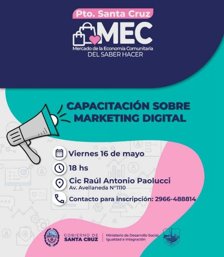 Asimismo, como parte de esta iniciativa, el viernes 16 de mayo se realizará una capacitación sobre Marketing Digital a las 18 horas en el CIC Raúl Antonio Paolucci. El taller brindará herramientas para potenciar los emprendimientos en el mundo digital.