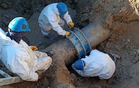 Se produjo una rotura en un caño principal de 400 mm que conecta las cisternas de SPSE en Caleta Olivia.
