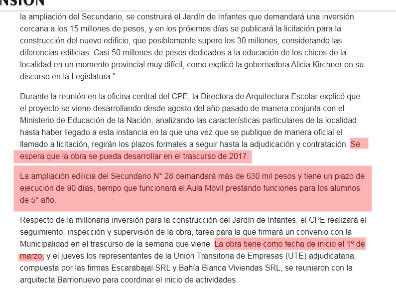 En 2025, el Gobernador Claudio Vidal visitó el Colegio Secundario N° 28 y mantuvo un encuentro con docentes, familias y autoridades educativas, oportunidad en la que el Gobierno Provincial asumió el compromiso de destrabar y finalizar una obra histórica, entendiendo que la educación y la infraestructura escolar son prioridades para el desarrollo de las localidades del interior provincial.